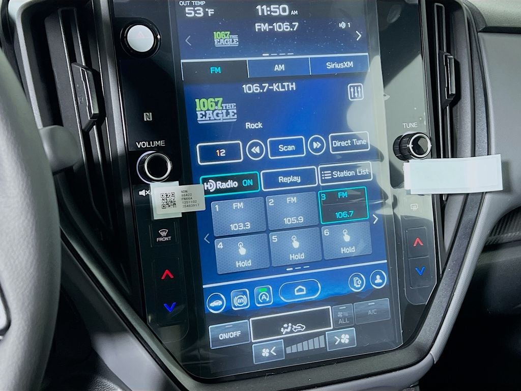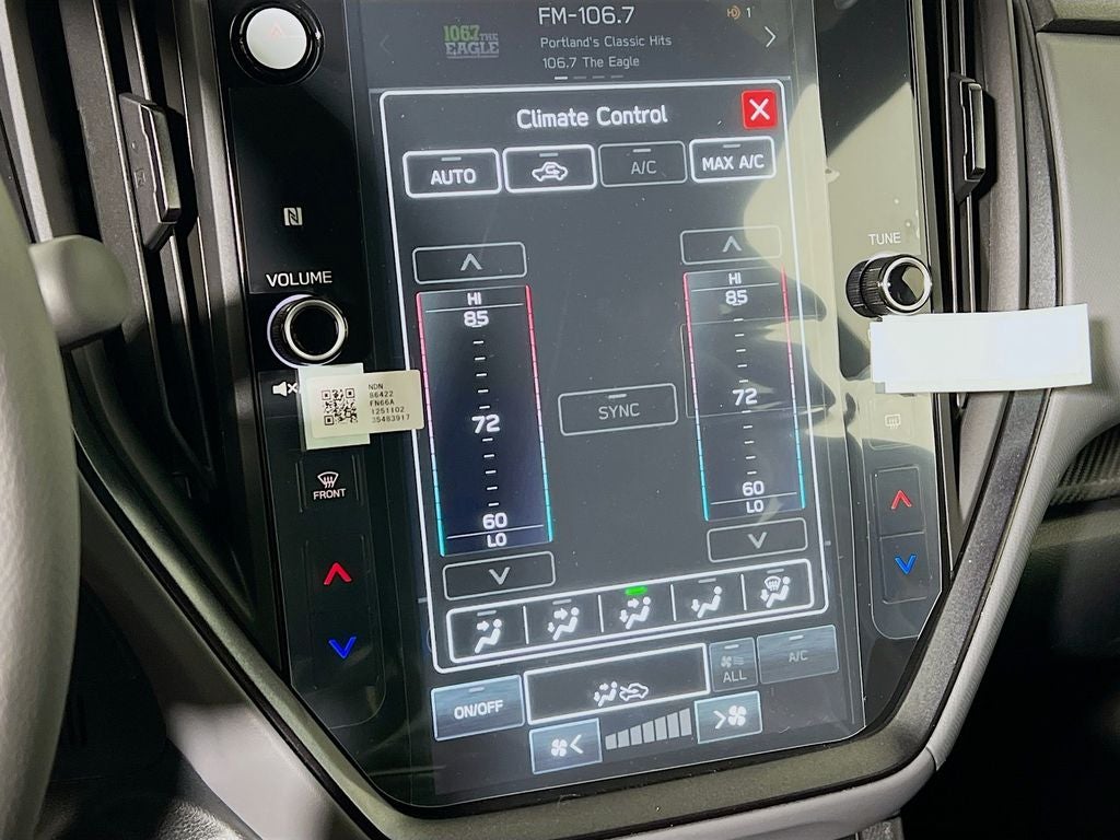 - Radio: Subaru 11.6" Multimedia Plus System -inc: AM/FM stereo, HD Radio, multi-touch gesture high resolution display screen, voice activated controls, Bluetooth® audio streaming and hands-free phone connectivity, Bluetooth® hands-free SMS text messaging connectivity, iPod control capability, smartphone integration: wired and wireless Android Auto w/full screen view and wireless Apple CarPlay w/full screen view, USB and Over The Air (OTA) audio system update, steering wheel audio system and Bluetooth® control switches, 6 speakers (2 dash panel tweeter, 2 front door and 2 rear door), illuminated 3.5mm auxiliary input jack, illuminated front USB A and C input/charge ports, connected services operation indicator, SOS emergency assistance: red SOS button and enhanced roadside assistance: blue i-button