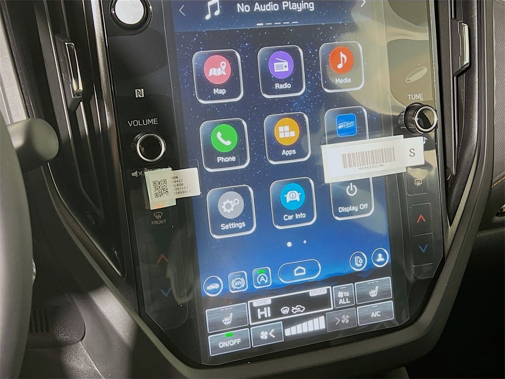 - Radio: Subaru 11.6" Multimedia Plus System -inc: valet mode, integrated center information display, AM/FM stereo HD Radio, multi-touch gesture high resolution display screen, voice activated controls, Bluetooth® audio streaming and hands-free phone connectivity w/SMS text messaging (refer to Subaru.com for cellphone compatibility), iPod control capability, smartphone integration: Android Auto and Apple CarPlay w/full screen view and wireless connection, SiriusXM satellite radio w/360L (free 4-month trial subscription included), USB and Over The Air (OTA) audio system update, steering wheel controls, 6 speakers, 3.5mm auxiliary input jack and roof mounted audio and satellite antenna