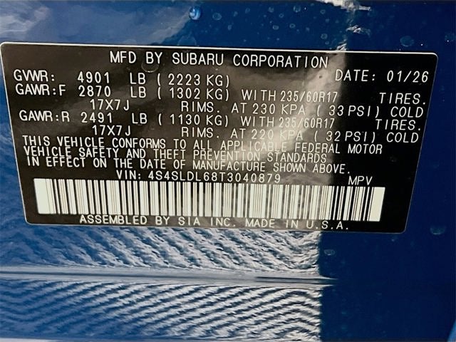 - Wheels: 17" x 7.0 J Matte Black Finish Alum-Alloy -inc: black wheel center cap w/Subaru 6 star logo