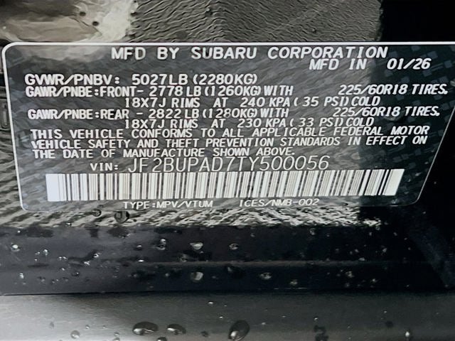 - Tires: 225/60R18 100H All-Season