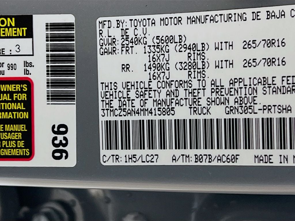 - Vehicle Name: Toyota Tacoma 4WD