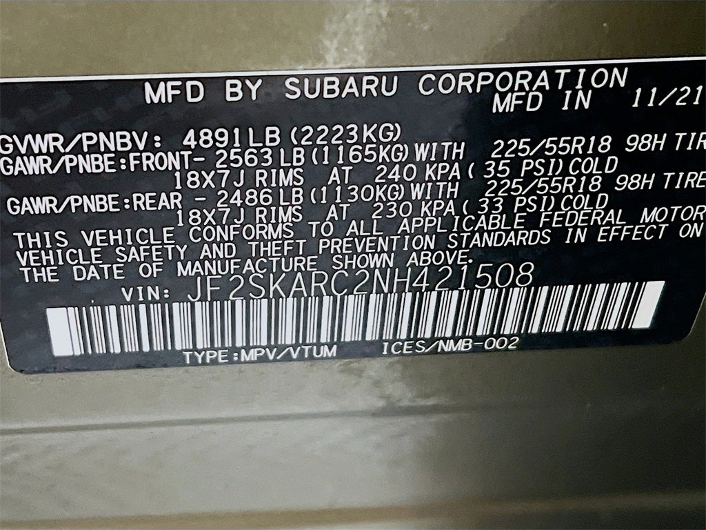- Tires: 225/55R18 98H All-Season