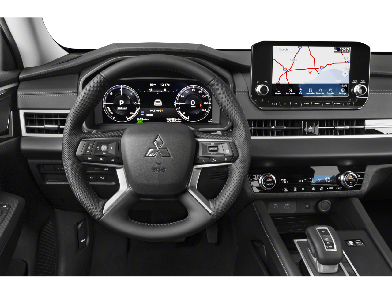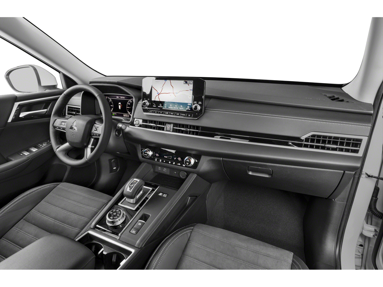 - Radio: AM/FM 9" Smartphone Link Display Audio -inc: navigation system, Apple CarPlay and Android Auto, SiriusXM satellite radio w/90 day SXM All Access and SXM Traffic & Travel Link subscription, HD Radio, Mitsubishi Connect w/safeguard and remote services and 24 month free trial (mobile app enrollment required), steering wheel audio and phone controls w/voice recognition, front USB-C and USB-A port, 6 speakers and Bluetooth® wireless technology