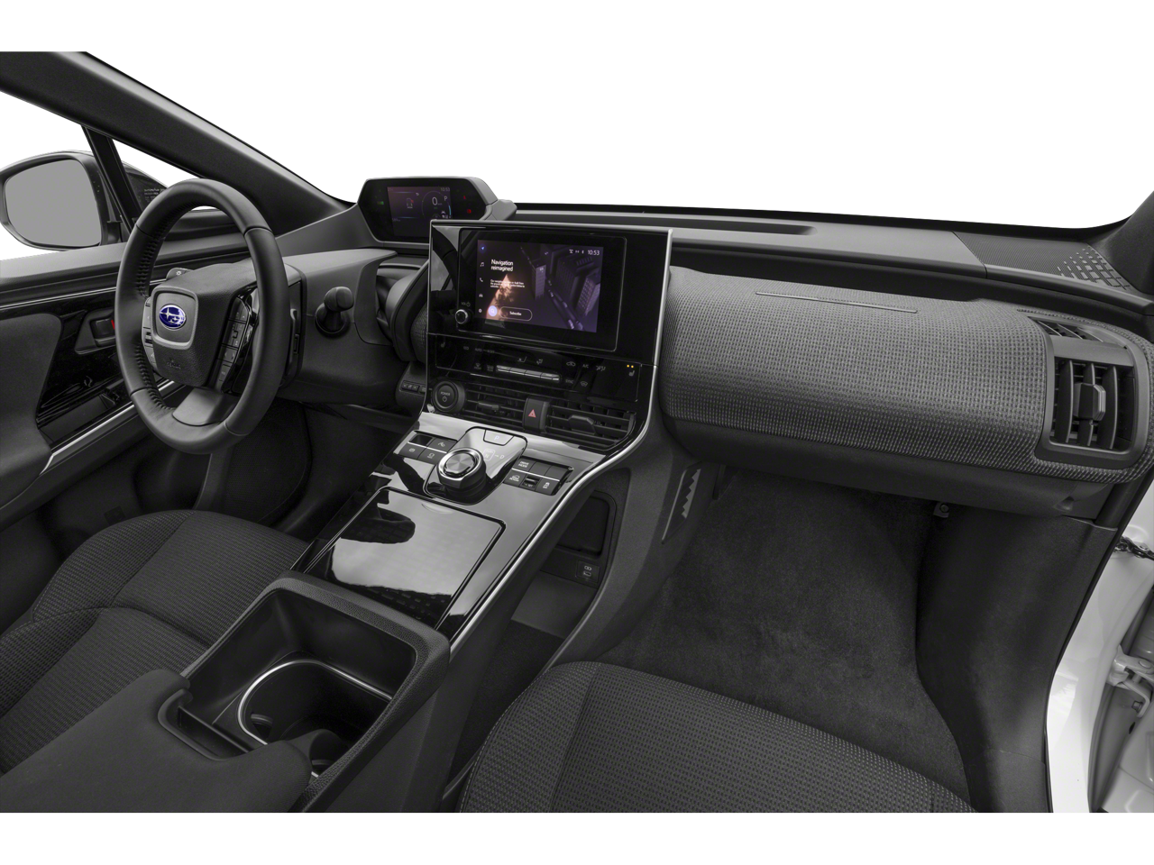 - Radio: Subaru Solterra Connect 8.0" Multimedia System -inc: navigation system (navigation subscription required), AM/FM HD radio, Bluetooth® audio streaming and hands-free phone connectivity w/SMS text messaging (refer to subaru.com for cell phone compatibility), SiriusXM all access radio (4 months free trial included/subscription required after), Android Auto, Carplay, 6 speakers, multi-touch gesture high resolution display screen, Subaru Solterra Connect intelligent assistant includes dual-zone voice control system w/driver and passenger headliner microphone, steering wheel talk switch, cloud navigation operation and integrated steering operation (subscription required), USB/Over The Air (OTA) audio system updates, USB/Map Over The Air (MOTA) navigation system updates, steering wheel control switches for audio system and Bluetooth®, USB A input/charge port and illuminated dual USB C input/charge port